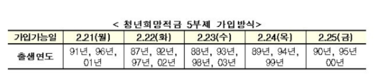 청년희망적금 가입 날짜 5부제