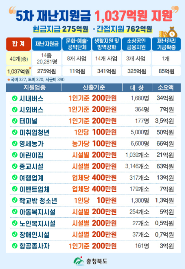 충북 5차 재난지원금 받을 수 있는 5개 분야